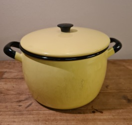 Gulsvart gryta med lock Kockums 3,5 liter. Höjd inkl. lock ca 16 cm, diam. 18 cm. Inga emaljskador. Fint skick. 175 SEK